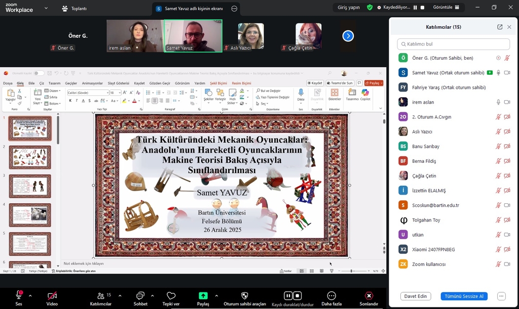 Felsefe Sohbetleri etkinliğinin 15. Oturumunda Dr. Öğretim Üyesi Samet YAVUZ, “Türk Kültüründeki Mekanik Oyuncaklar” başlıklı bir sunum gerçekleştirdi.